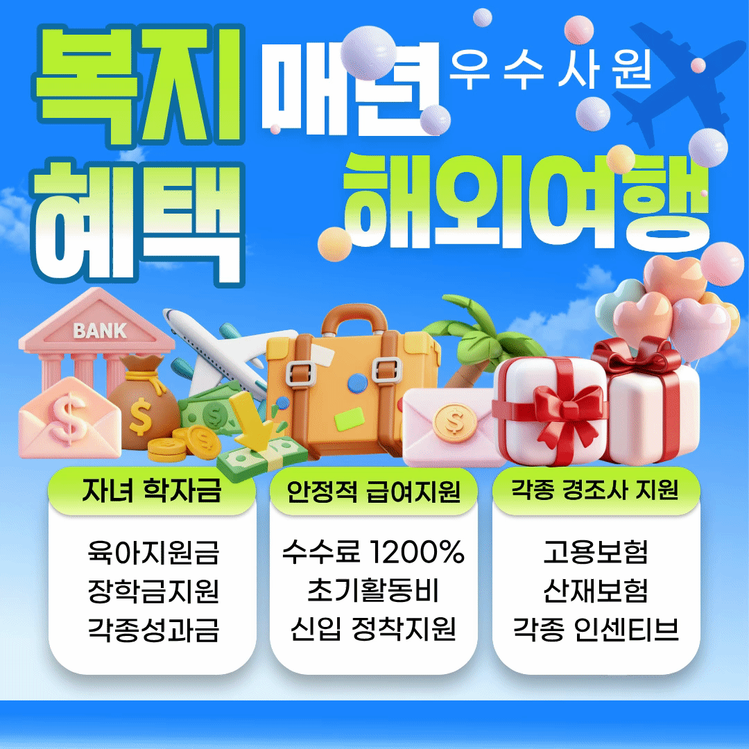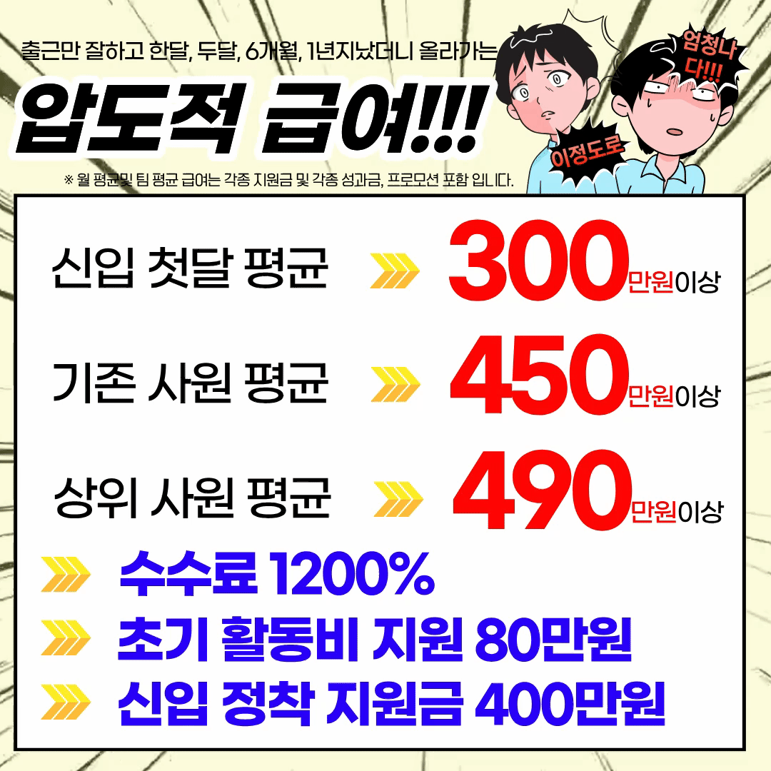 [10-4시]초기250만원(실적X)+매월400만원ㅣ경력720%ㅣ동반가능/남녀