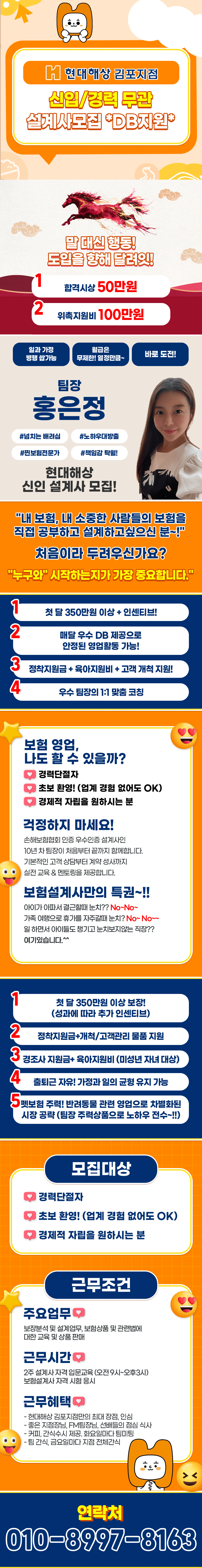 현대해상화재보험(주) 주소: 경북 포항시 남구 포스코대로 346 목록 [현대해상 김포지점] 신입/경력 고객관리팀 모집(DB지원) 150만원지원 등록일: 2026.01.16 조회수: 2회 상시 모집조건 회사분류 GA 근무지역 서울/경기/인천 경력요구사항 신입 (업계 경험 無) 채용공고 내용 지원신청을 하려면 로그인이 필요합니다 로그인하기