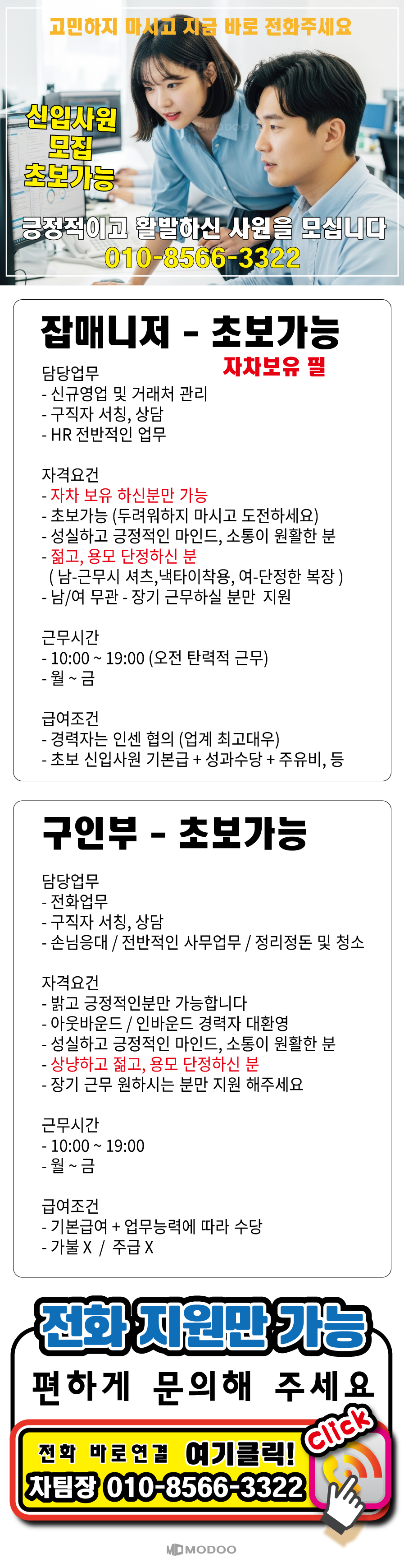 신입-구인-관리 잡매니져 모집 - 활발한 성격 소유자 환영
