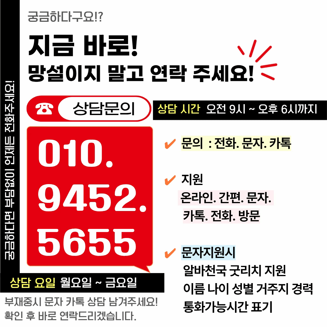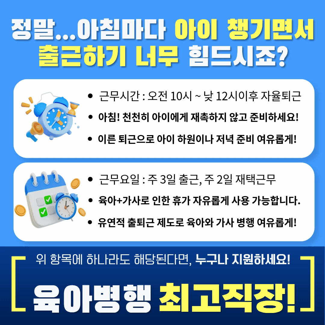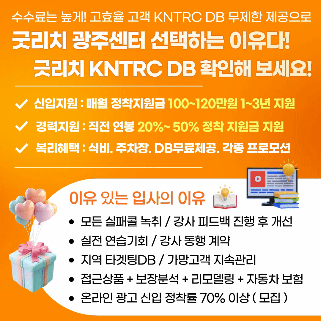 굿리치 광주본부 주소: 광주 광산구 풍영로200번길 13 목록 [육아엄빠 클릭]쉬-운업무ㅣ정착지원매월120만원ㅣ10시출근~자율퇴근ㅣ재택근무 등록일: 2026.02.04 조회수: 7회 상시 모집조건 회사분류 GA 근무지역 광주/전라 경력요구사항 신입 (업계 경험 無) 채용공고 내용 지원신청을 하려면 로그인이 필요합니다 로그인하기