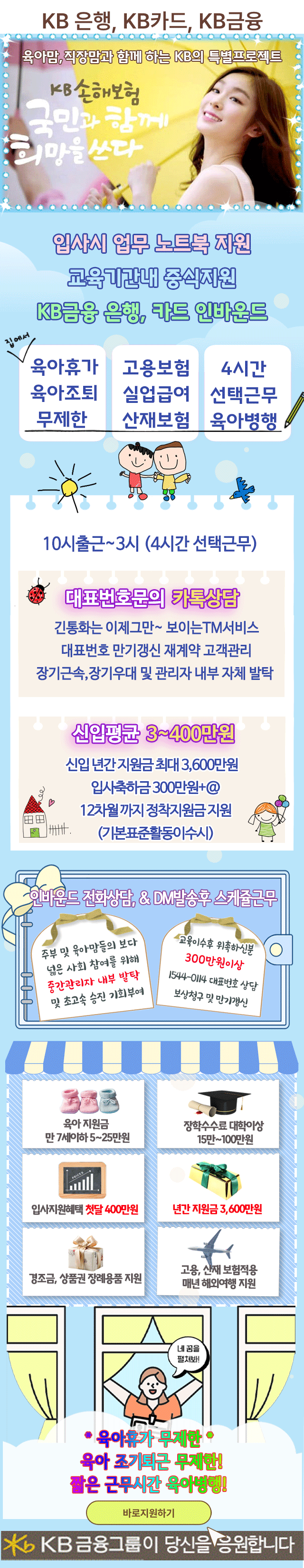 KB]은행고객상담/첫급여400만가/300만원기본보장/자동차갱신,보상처리