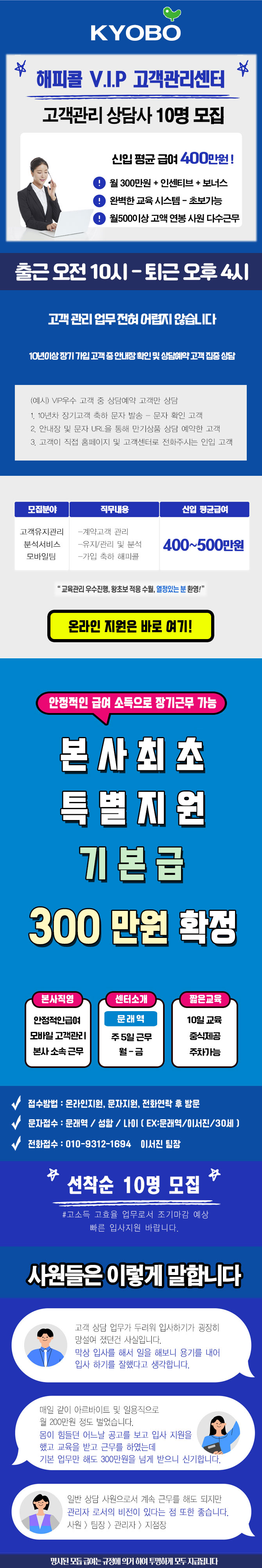 오후4시[정시퇴근]기본급300만원[신입400만원]해피콜,인바운드.고객관리