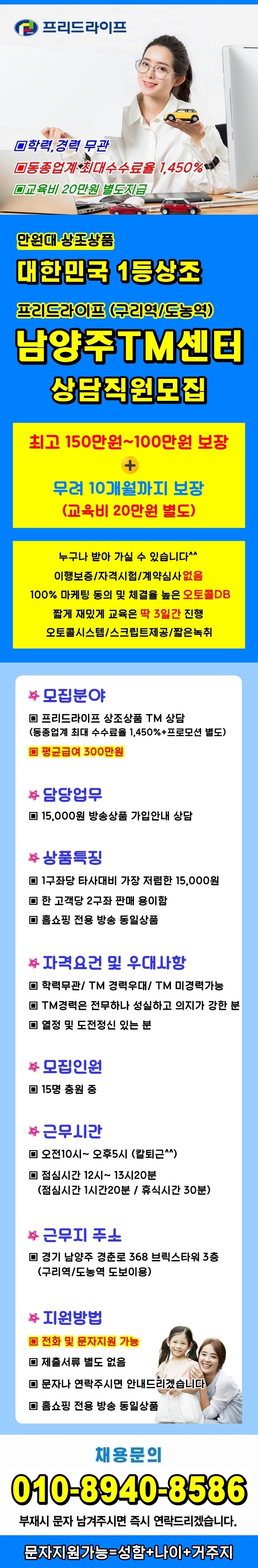 프리드라이프-남녀상담원 / 초보도할수있는쉬운업무 / 월평균300만원 / 초보 및 주부가능
