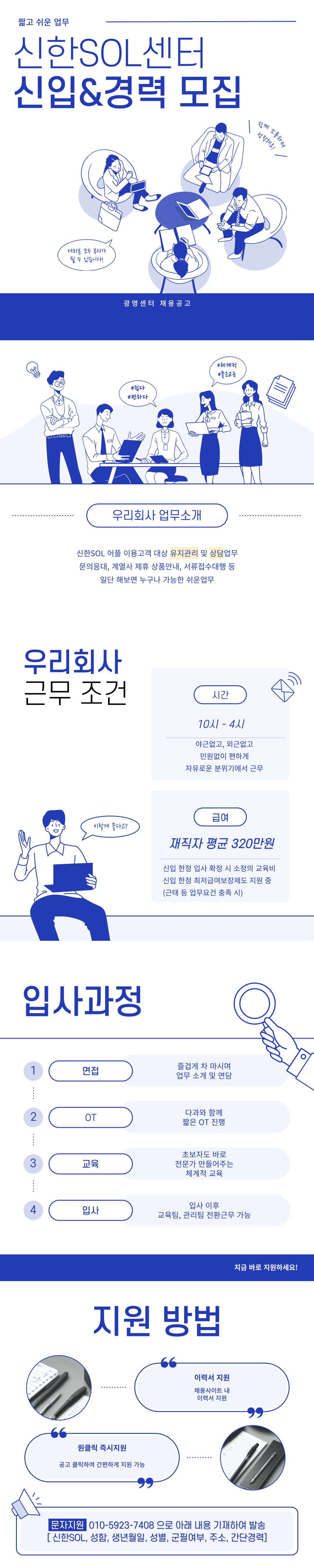 [광명시청앞]신한SOL어플이용고객상담/4시퇴근/REAL직영센터/내근직근무