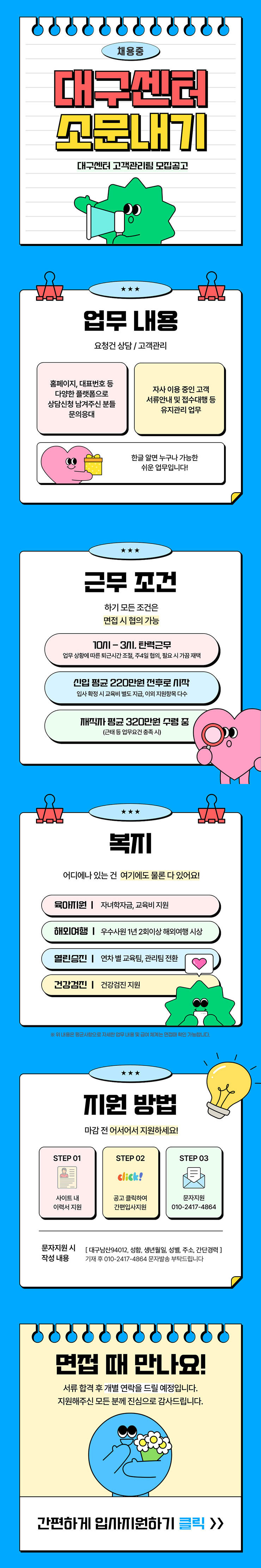 짧게일하고 많이벌어요 인바운드팀 회원관리상담 대박적복지 대구남산94012
