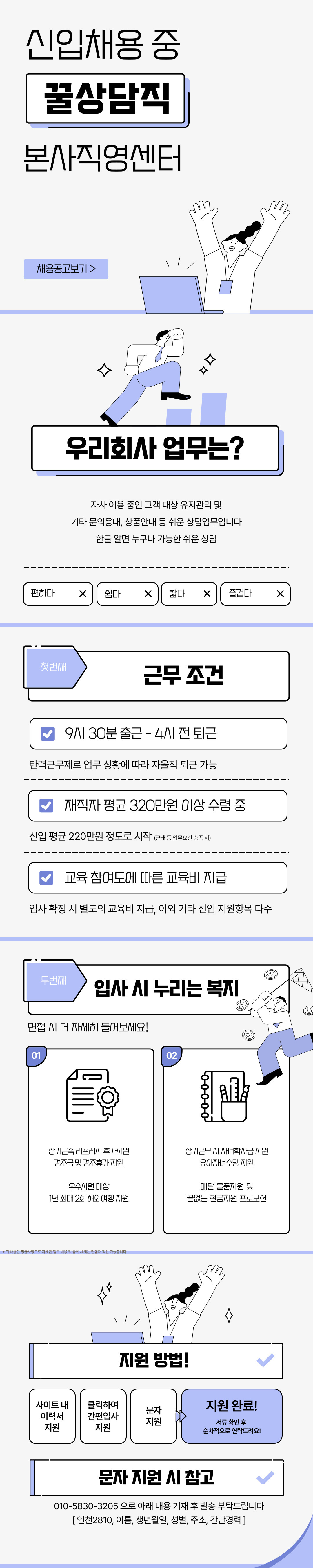 200지원금/급여300이상/다이렉트 고객관리 상담 접수/신입가능/인천hk
