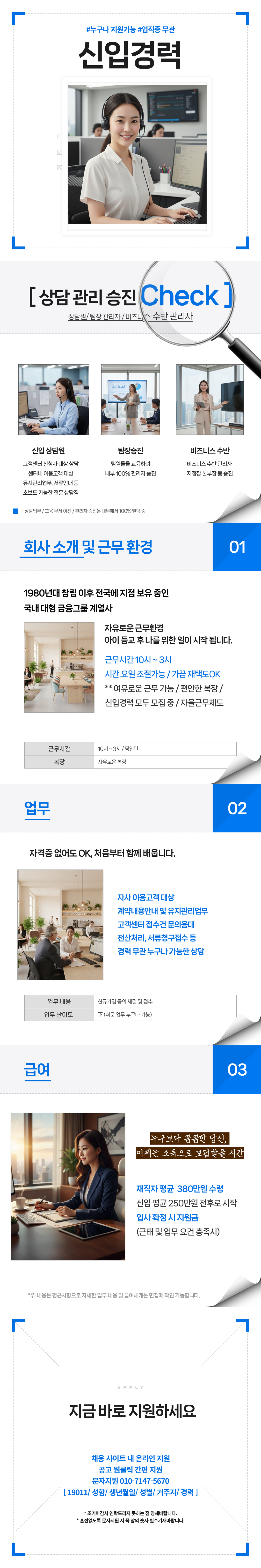 로켓채용/바로면접/시간조절되는/자유로운환경/상담/관리/기본/접수/19011