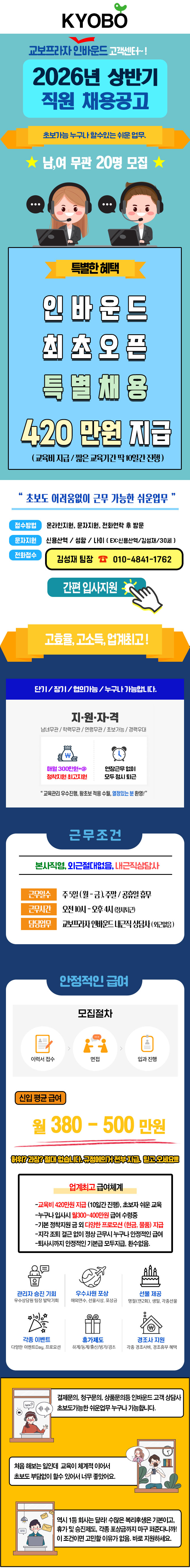 4시퇴근[신입-420만원[지원금]주5일(월-금)월380-500만원기본급