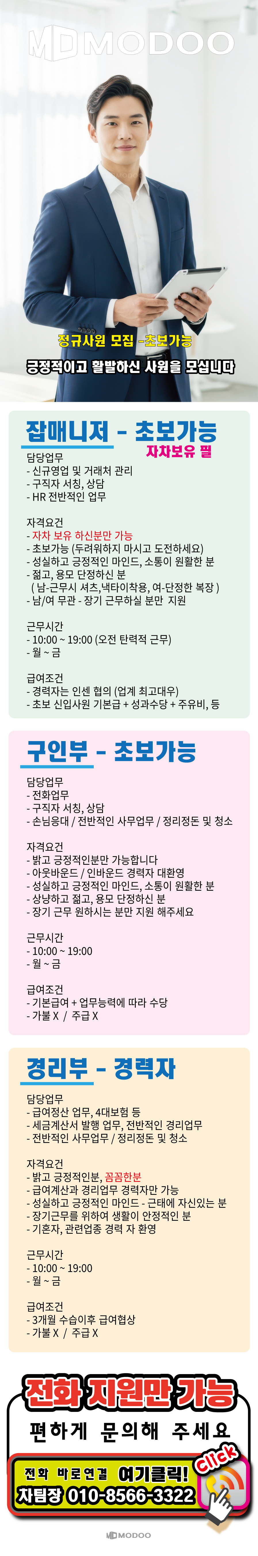 연수동 신입 사원모집 매니져(초보가능)-구인 사원 모집